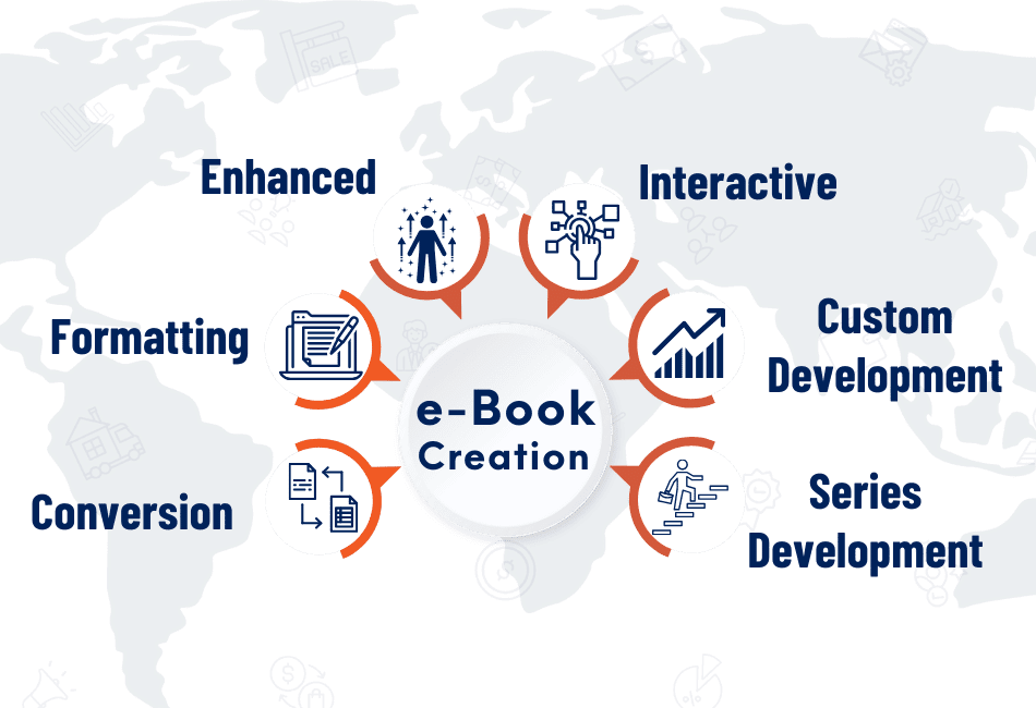 E-book creation services encompass the end-to-end process of designing, writing, formatting, and publishing electronic books. These services are tailored to authors, businesses, and educational institutions looking to convert their ideas, manuscripts, or educational content into professionally crafted e-books. As a leading eBook creation service provider, we ensure that your e-book is engaging, visually appealing, and compatible with various e-reading devices and platforms.