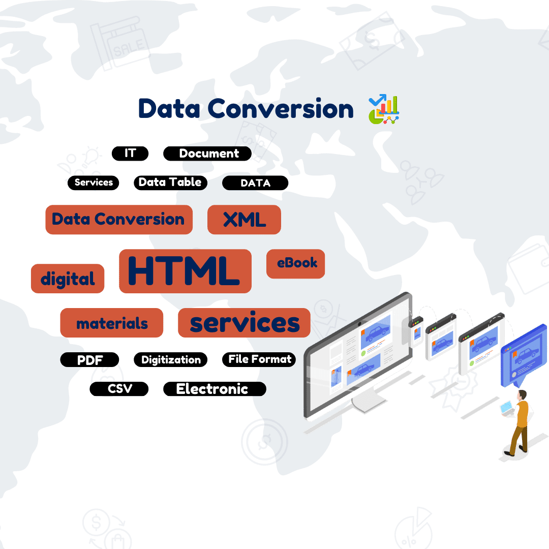 Our data conversion services encompass a broad spectrum, including but not limited to, convert PDF to CSV, XML conversion, HTML conversion services, eBook conversion services, converting Excel file to CSV and many more. We cater to diverse needs, ensuring that your data is accurately converted to the desired format, whether it's for analytical purposes, web publishing, or digital archiving.
