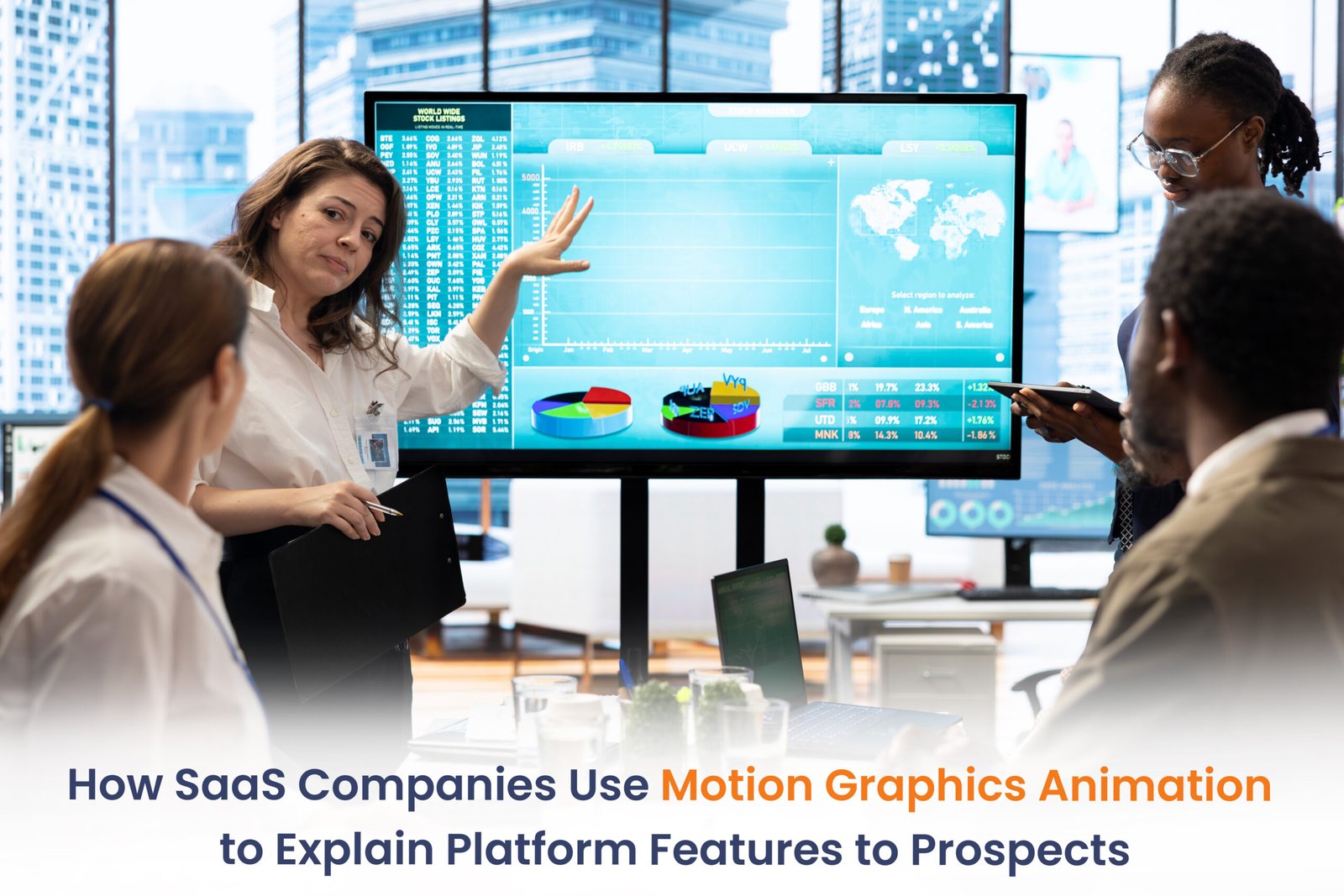 During these conversations, teams have to show how specific features support operational tasks and reporting needs. Motion graphics animation helps organize that explanation step by step. Instead of jumping through a live product interface, presenters can run an animated sequence that shows workflows, automation scenarios, and reporting dashboards as a clear process.