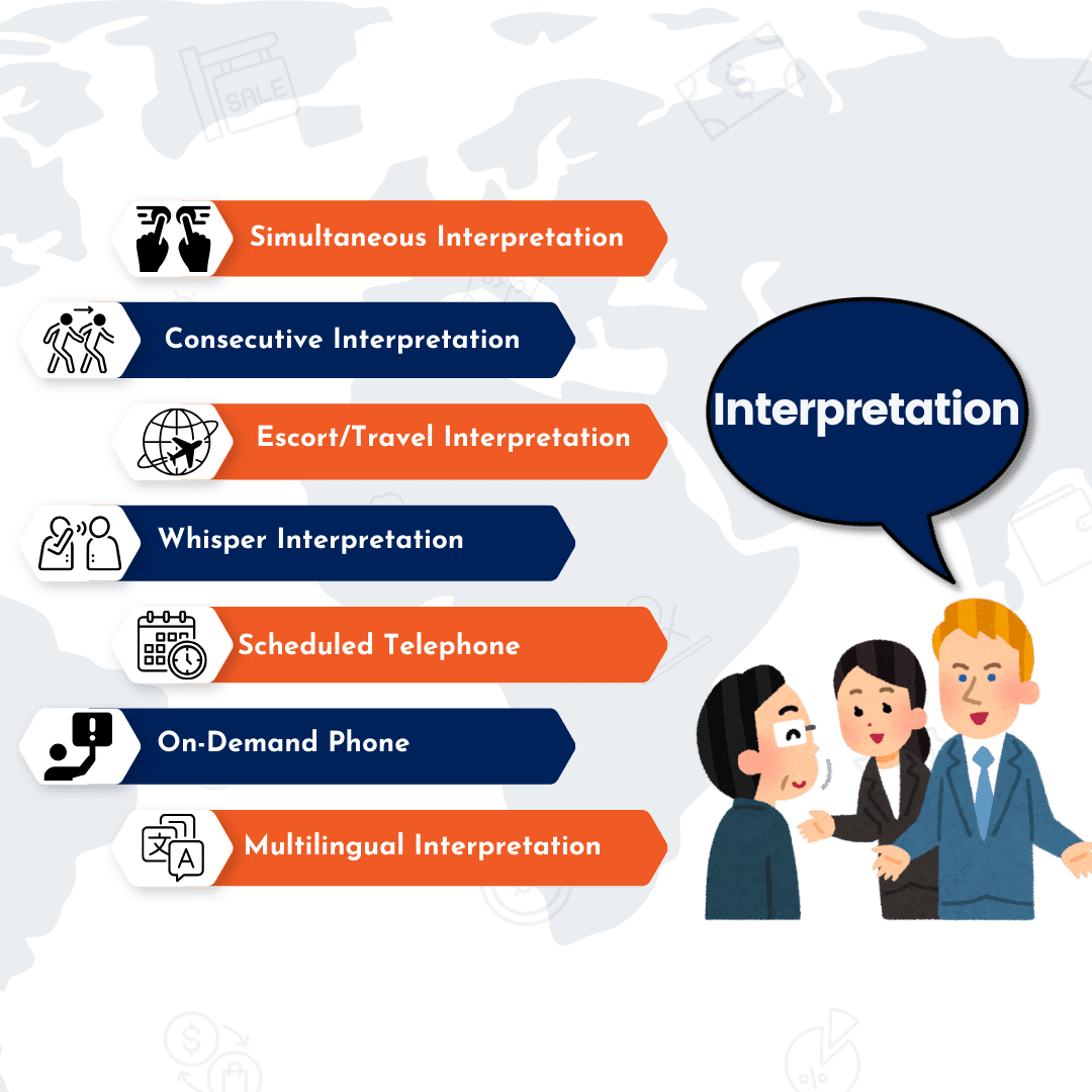 Our interpretation services cover simultaneous, consecutive, escort/travel, whisper, scheduled telephone, and on-demand phone interpretation, tailored to various needs.
